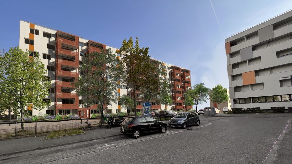Dans le but d’améliorer la performance thermique, les bâtiments sont isolés par l’extérieur et toutes les menuiseries sont remplaçées. Des balcons sont ajoutés à chaque logement de manière à offrir un espace extérieur et de distinguer les bâtiments dans un environnement urbain homogène. En intérieur, toutes les parties communes sont refaites à neuf ainsi que les pièces d’eau de chaque logement. Toutes les installations techniques (électricité, ventilation, plomberie) sont remplacées et mises aux normes.