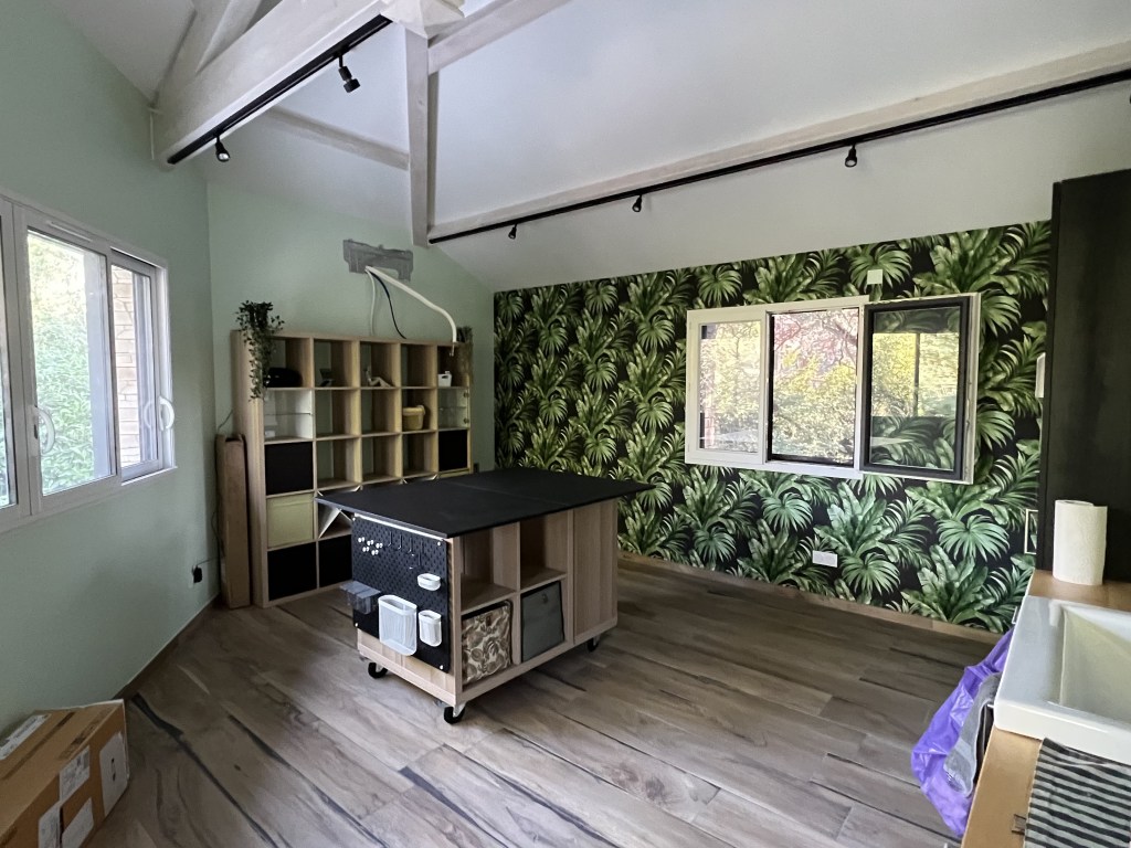 Une partie de la dalle rez-de-chaussée a été décaissée et un mur porteur a été ouvert afin d’agrandir le salon. Par la même occasion, l’entrée a été retravaillée afin d’optimiser l’espace et ajouter des rangements.